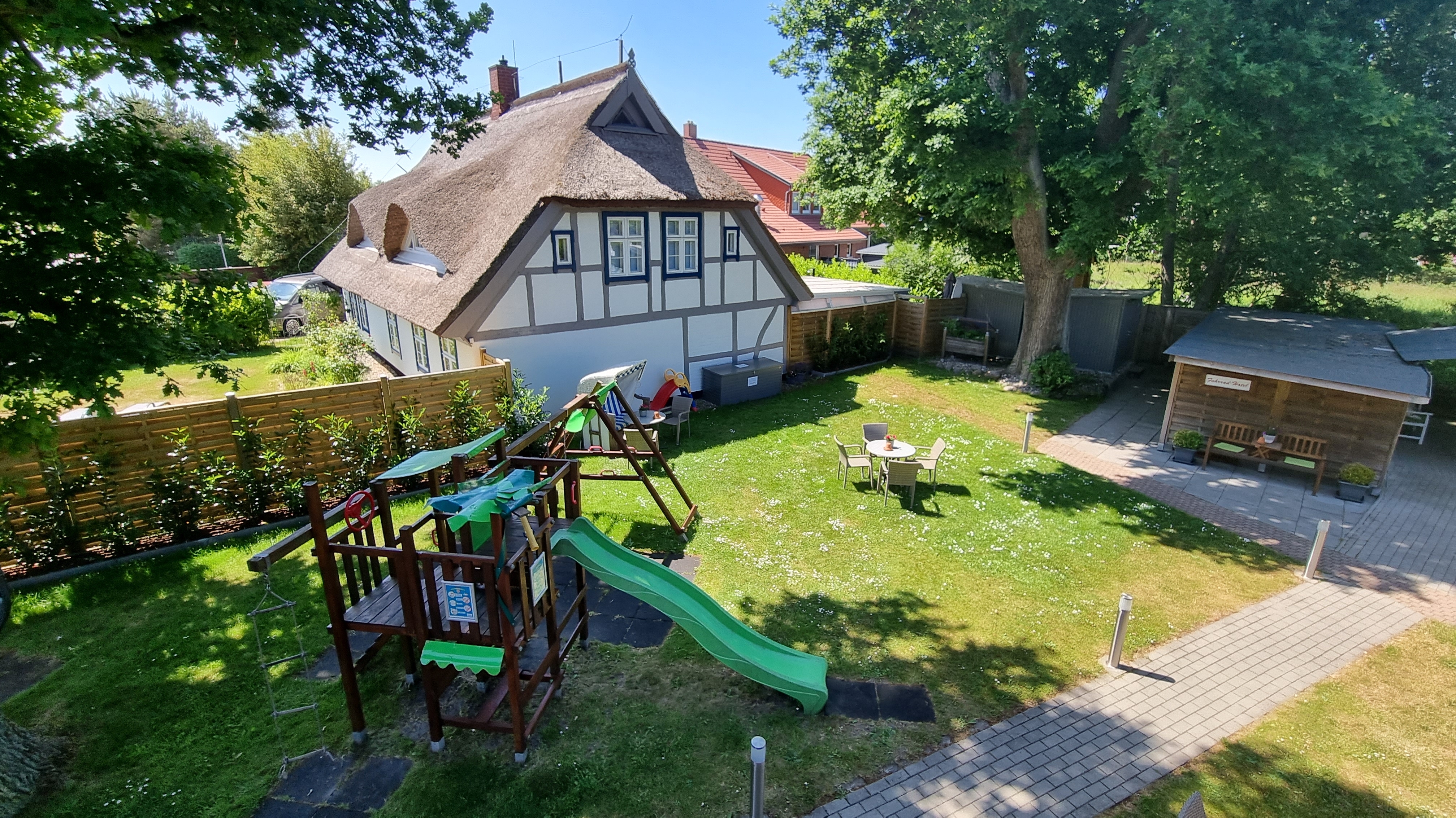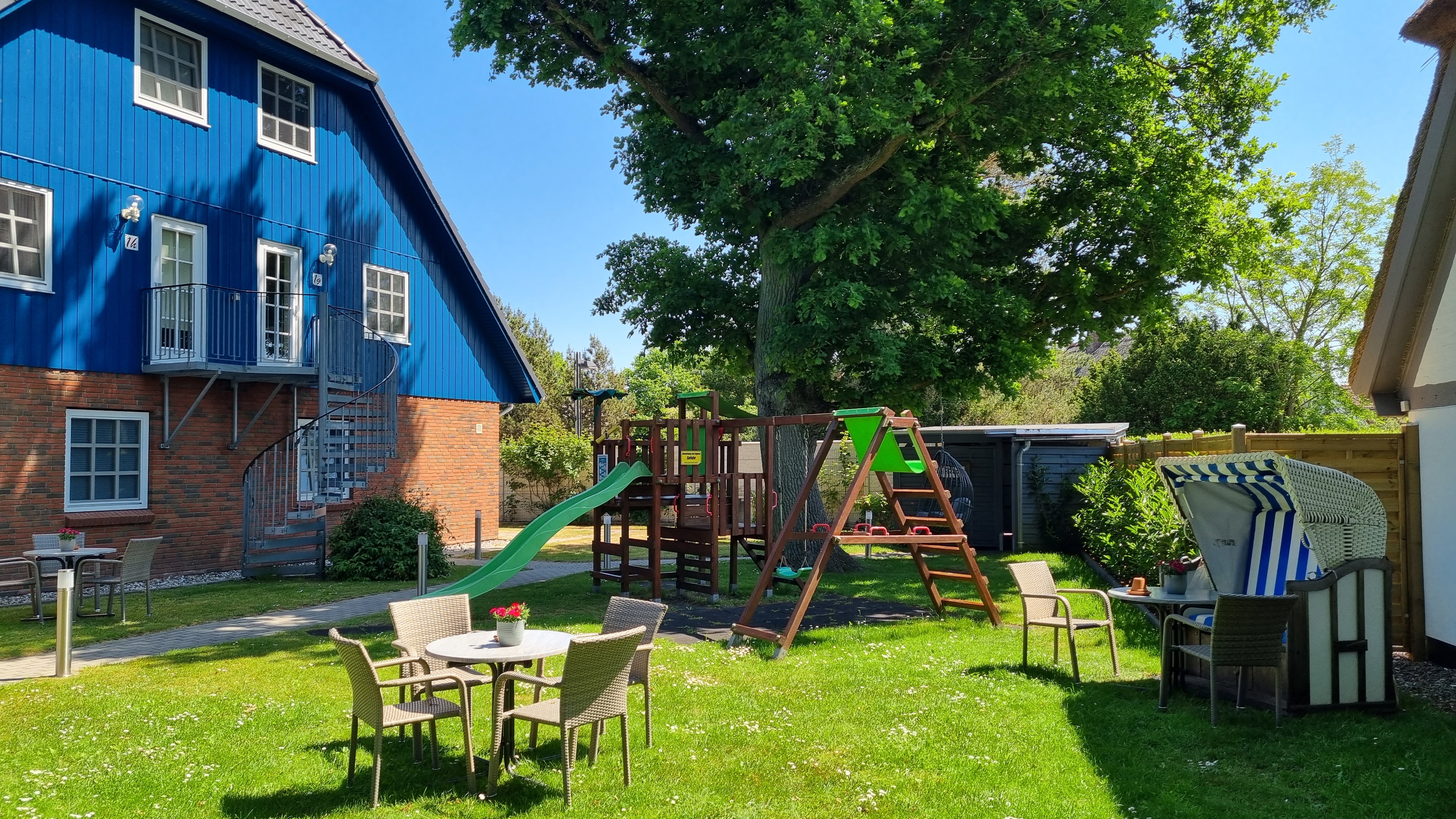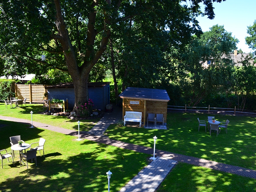 In unserem großzügigen Garten befinden sich 3 Landhäuser mit insgesamt 9 Terrassen- sowie 12 Maisonette Apartments im maritimen Stil. Lassen Sie Ihre Seele baumeln und schalten Sie vom Alltag in unserer liebevoll gestalteten Gartensauna ab.