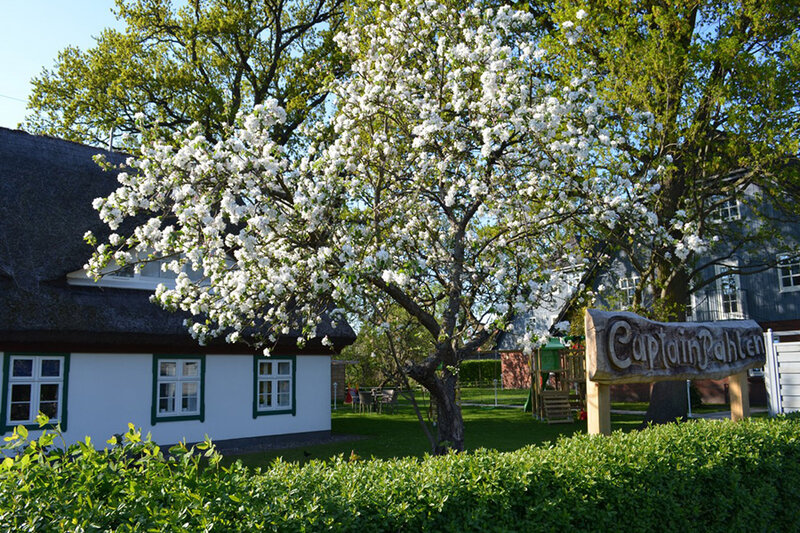 In unserem großzügigen Garten befinden sich 3 Landhäuser mit insgesamt 9 Terrassen- sowie 12 Maisonette Apartments im maritimen Stil. Lassen Sie Ihre Seele baumeln und schalten Sie vom Alltag in unserer liebevoll gestalteten Gartensauna ab.