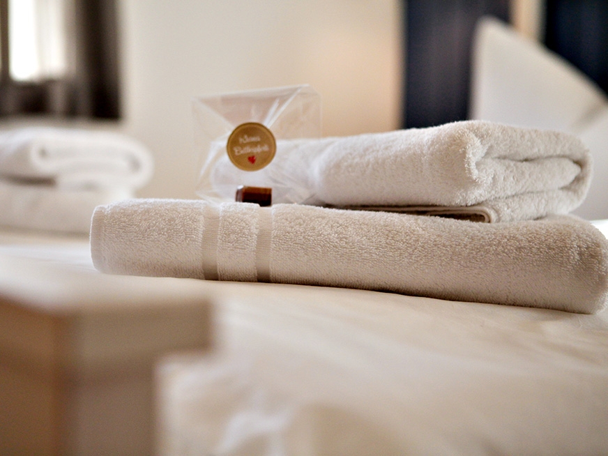 Im Badezimmer sind kostenfreie Pflegeprodukte sowie ein Haartrockner und Wäscheständer vorhanden. Unsere Apartments sind mit Bettwäsche und Handtücher ausgestattet.
